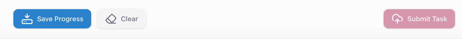 The student enters data or selects form a presented choice, and at the footer are three buttons. Save will perform and explicit commit of data (back to FileMaker). Clear will remove all current values from form. Submit will show dialog confirming action, and then both save data and add the finalCommit value. For students, all buttons are hidden when isLocked === true.