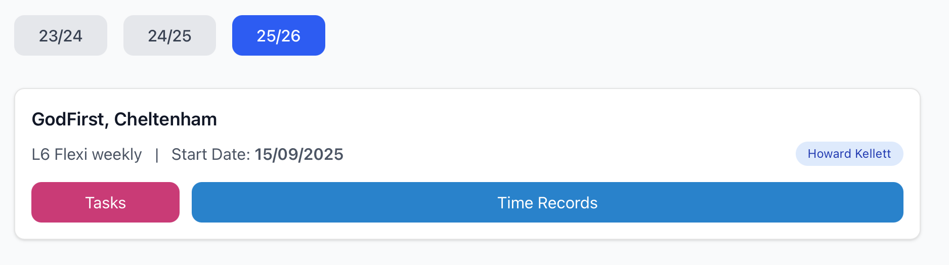 A student placement will be linked to one of these module/year-specific templates, and a scripted process will add an individualised copy of each of the template records (StudentTasks), using the appropriate deadline data based on the Study Centre in Sopley Central and the JSON object which defines the specific questions in the task. These will be first ordered by deadline date before creation, so that the filemaker view will naturally sort to this order. These are the individual endpoints where student/ supervisor/ marker responses will be held, and from where they can be pulled to re-hydrate any tasks.