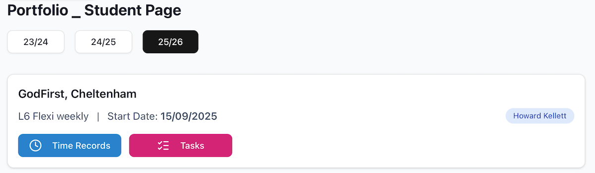 The two things a student has to complete during a placement are records of time with activity, and a series of questions that require a typed answer. The first of these will be referred to as Time Records. The second will be called Task Entries. The entry may be a text input, but also any other appropriate control (like a tickbox or radio set, or scale or priority ordering) There may be requirement for additional doument uploads, and the precise nature of these is currently being discussed.